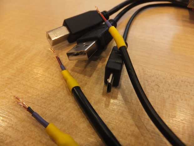 - La soldadura de los + 5v y los cables de tierra de la mitad de USB-A la Junta de tira