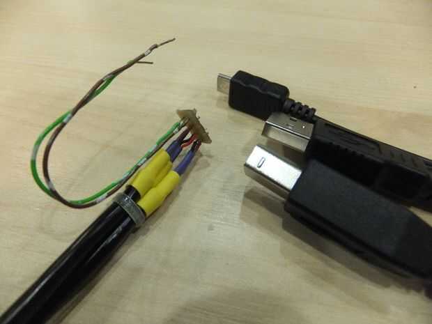 - Picar el USB al cable del USB-B en la mitad