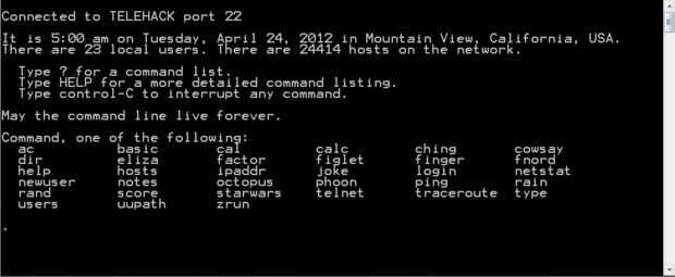 Tipo (sin comillas) "Telnet Telehack.com" (Foto 5)