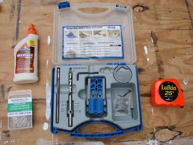 - Tornillos de agujero-2 de bolsillo ½ tornillos para unir 2x4s y 1 ¼" para unir la madera más fina