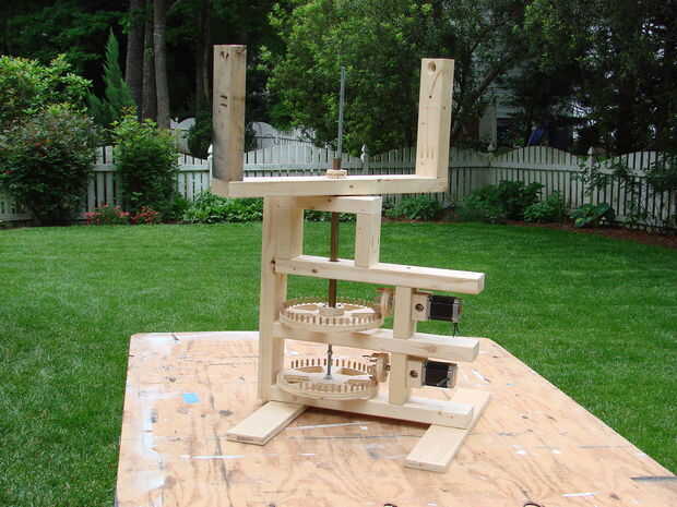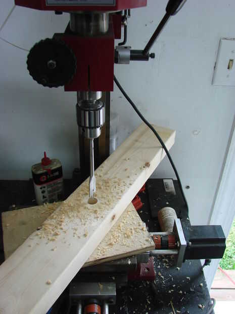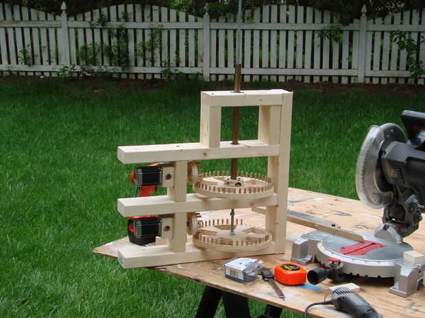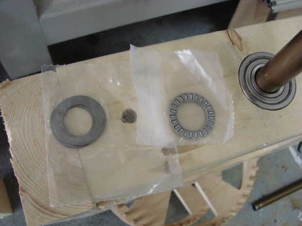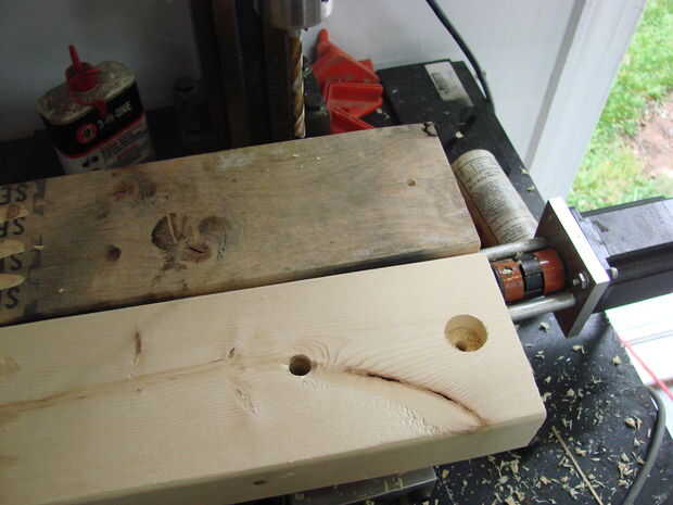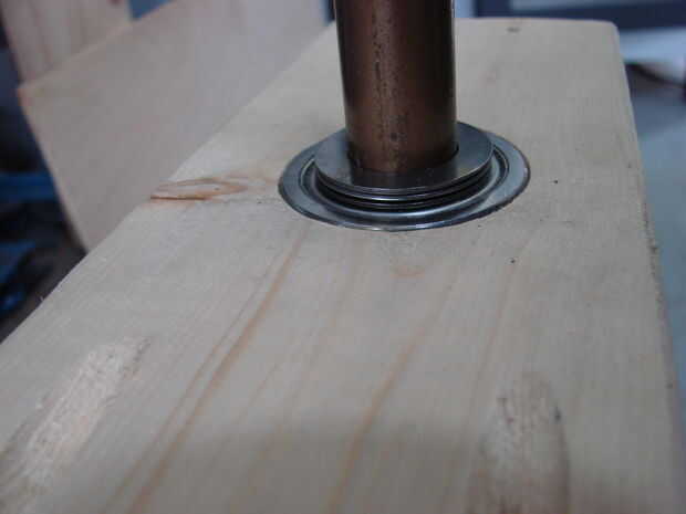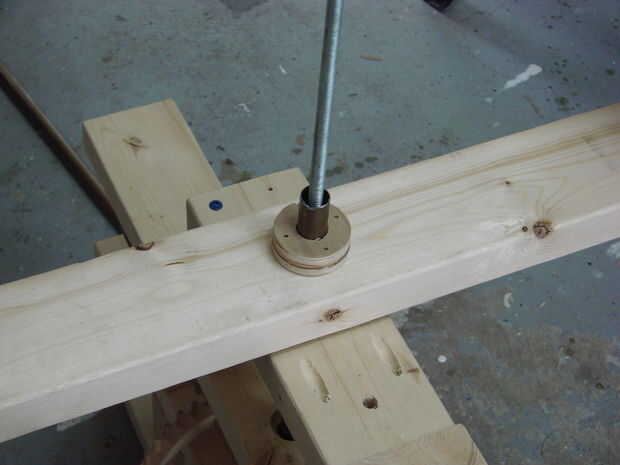 Los postes de la meta de un miembro largo horizontal de 36" y 2 x 12" largo vertical soporta. La media del miembro horizontal obtiene un agujero de ¾". Los dos montantes verticales Haz agujeros ¾" cerca de ahí termina. PARA asegurarse de un movimiento de baja fricción, una arandela de empuje fue colocada entre los postes de meta y la placa de apoyo superior.