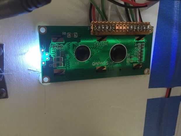 - Soldadura de pernos de encabezado en el panel LCD y un pequeño PCB hasta el otro extremo de las patillas de la cabecera. Usé un viejo PCB y había cortado a la medida. Esto hace que sacar los cables a la placa más fácil