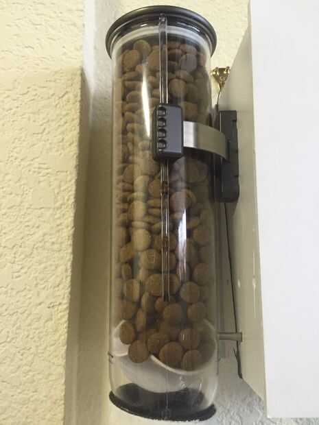 Este proyecto permite animales domésticos para alimentar a un ritmo constante que no te levanta más de un dedo. Hay una rampa en la caja que permite que los alimentos entrar en la rueda que es accionada por un servo que distribuye comida a su mascota