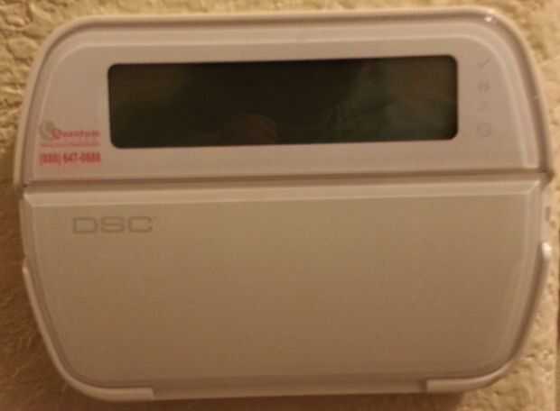 Encontrar el número de modelo de teclado. El teclado DSC está cerca de una puerta (imagen 1 y 2). En mi casa, hay un teclado por la puerta del garaje y uno por la puerta de entrada.