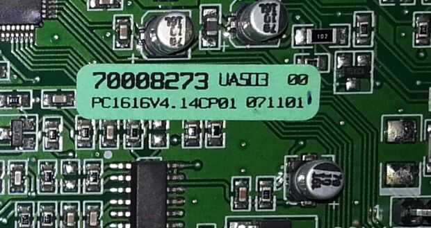 Encontrar el número de modelo del panel de control. El teclado tiene una pegatina en la parte superior, y el número de modelo está en el centro. El mío es un PK5501 (imagen 3 y 4).
