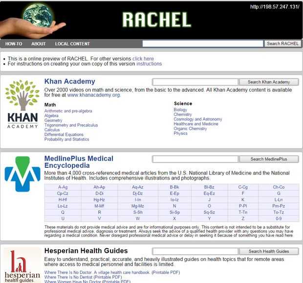 En Resumen, RACHEL ofrece la mayoría de los materiales necesarios para una buena educación (distinto)... justo lo que necesitamos para preservar en el caso de Apocalipsis.