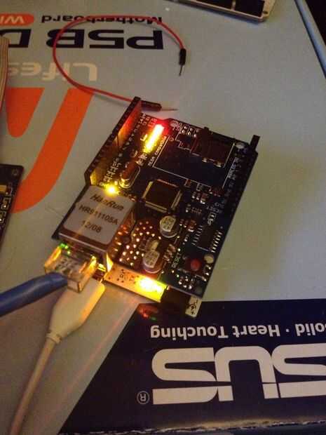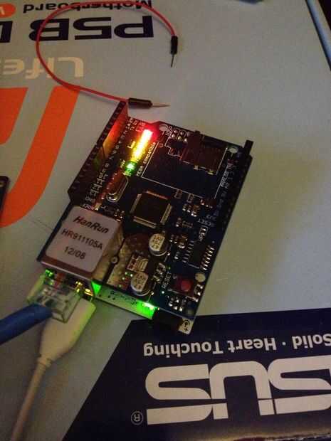 -es decir. un arduino estándar - clones pueden adquirirse desde $5 hacia arriba - Shield Arduino Ethernet (enlace de amazon £7)
