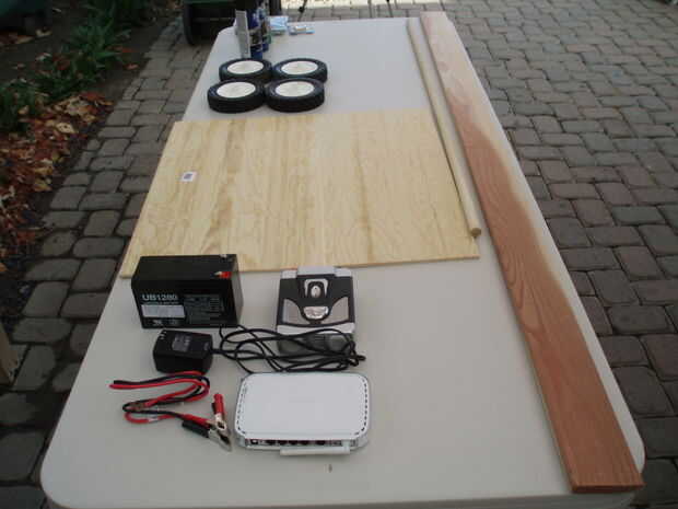 batería de 12 voltios, inversor, router inalámbrico y tal vez un cargador de baterías