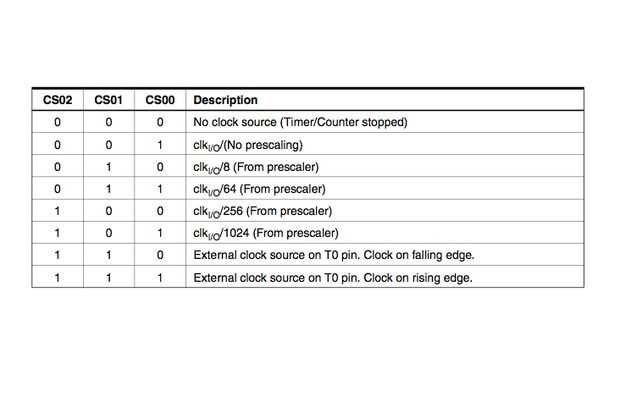 Observe en el último paso que hay diferentes escala de opciones para los diferentes temporizadores. Por ejemplo, el timer2 no tiene la opción de 1024 prescaler.