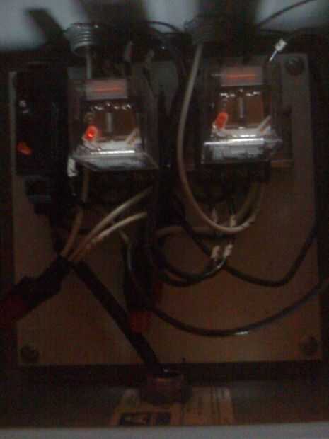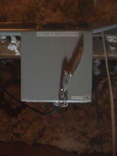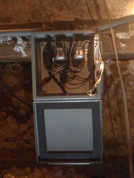 Este cuadro se encuentra en el ático.  Recibe las entradas de los interruptores de proximidad y a través de relés, activa los circuitos de luz rojo y verde y la - todavía por verse - puerta montado ventilador.