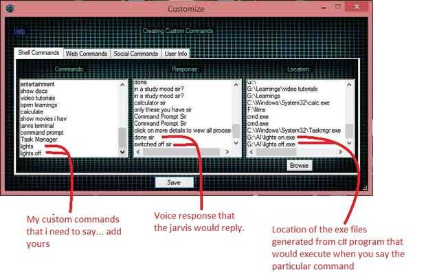 Haga clic en el botón en la parte inferior derecha para agregar comandos personalizados +...