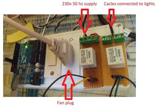 Aquí está mi modificación. Se ha añadido un interruptor más con alimentación de 230v de 50 hz AC para controlar el ventilador.