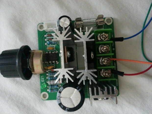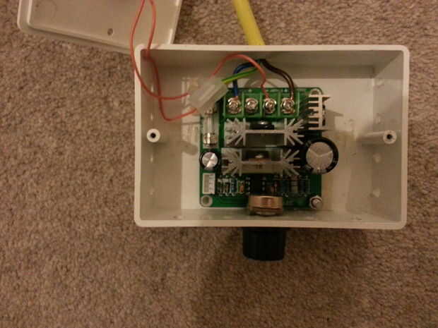 1 * pulso ancho de modulación PWM DC Motor Control de velocidad (aproximadamente £4 de cualquier uno de Hong Kong basado en fuentes electrónicas en eBay). Asegúrese de que usted compre uno con un fusible incorporado aunque