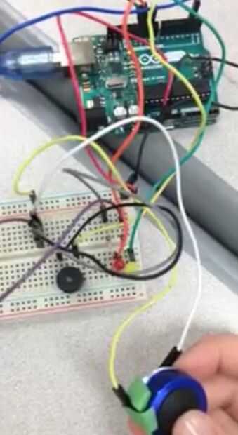 Este reloj de alarma enciende y apaga basado en cuando el botón se abre o cierra el circuito. Cuando el circuito es cerrado, ambos LEDs intermitente alternativo mientras que el timbre se apaga. Esto no se detiene hasta que se hace clic en el botón para apagar el circuito.