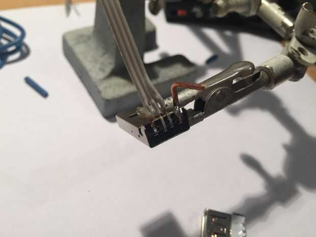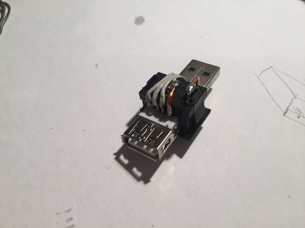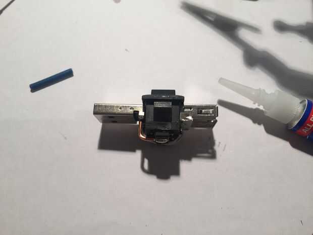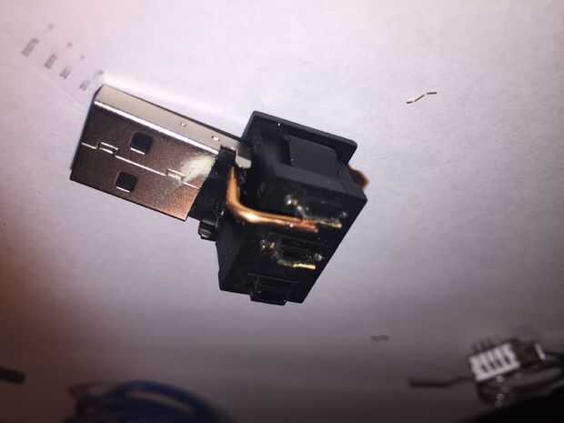 -imagen 3: utilicé un alambre de cobre con el fin de mantener el conector USB en su lugar.