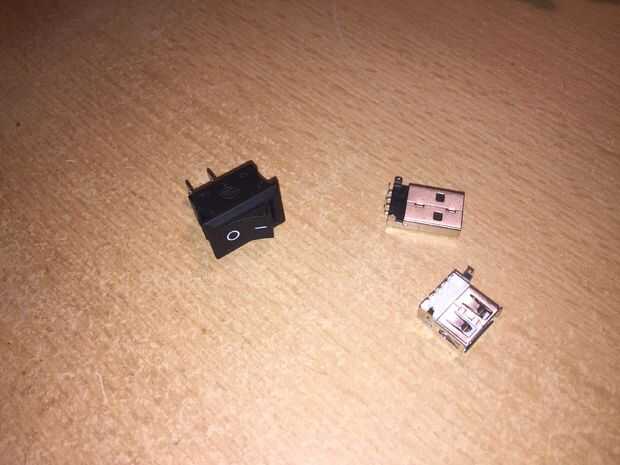 Puede utilizar este o cualquier otro interruptor que te gusta, su fácilmente encontrado en ebay, así como los conectores macho y hembra de USB.