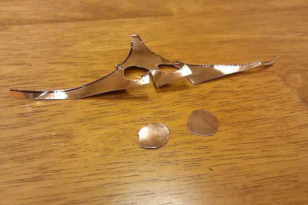 Utilice las tijeras para cortar dos círculos de papel de aluminio, aproximadamente 1" de diámetro o del tamaño de un cuarto.  (Esto puede recortarse abajo más adelante en pilas más pequeñas.)