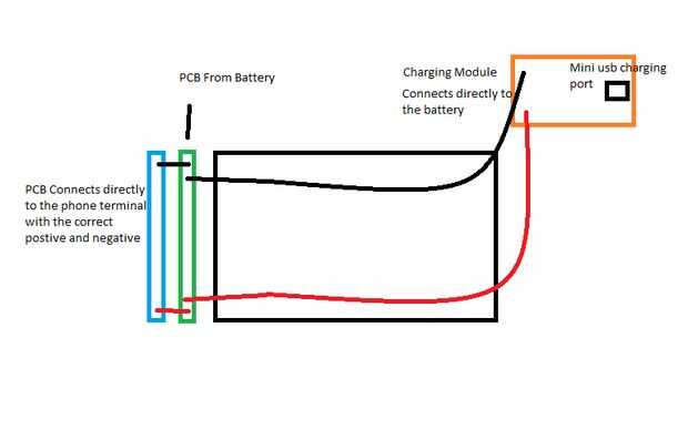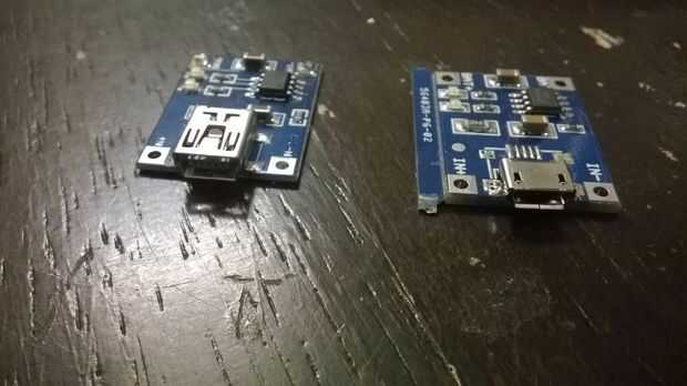 Usé una vieja batería de cañón desde una cámara digital como fuente de energía. Tomó la orignal batería AAA y guardó el cuerpo de él e inserta la batería del cañón sin la carcasa y mantiene la carga pcb. Tuve dos opción a escoger de para la carga micro usb, mini usb o módulo. Utilizando la versión micro usb sería la mejor opción pero no es tan robusto como el mini usb y mis padres lo utilizará y tienen muchos productos que son no micro usb y mini usb. He incluido un diagrama simple sólo en caso de que mi explicación no es lo suficientemente clara