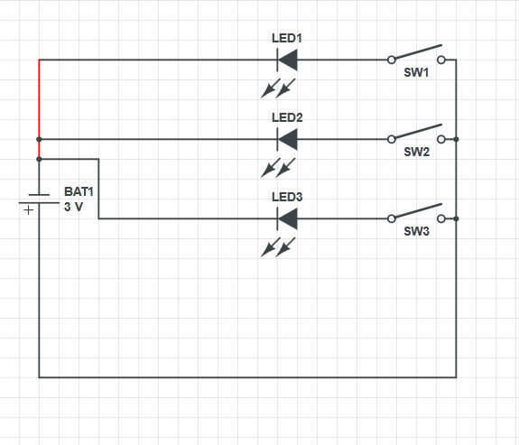 Dibujé el siguiente circuito. En la imagen 3 puede ver dónde está la brecha (debajo del botón). También incluí un esquema del circuito, nunca hice uno antes así que por favor me deja saber si lo hice mal.
