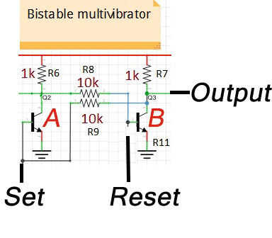 La señal de clap que estamos produciendo es efímera, por lo tanto necesitamos un arreglo para almacenar esta señal intangible en algo más concreto. Por lo tanto estamos utilizando configuración de multi-vibrador biestable del transistor para almacenar la señal de aplauso.