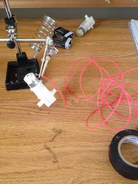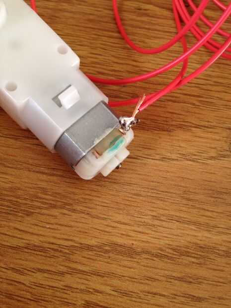 Ok, así que toma los dos cables que acaba empalmado juntos y conecte que un su motor. A continuación, conecte una longitud de cable al otro cable en el motor.