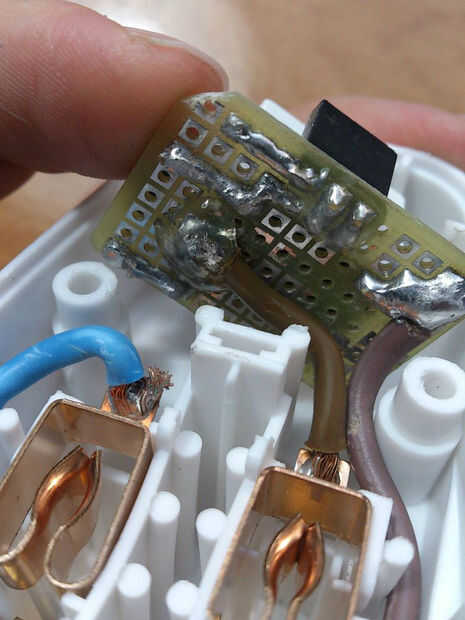 Peligro: cubrir el agujero en el que el interruptor fue posibles orificios de forma y otros, especialmente si alguien puede meter un dedo dentro. Si no se puede cerrar el caso herméticamente o la integridad de la carcasa está gravemente comprometida separar el caso y empezar de nuevo con otro. Nunca dejarlo enchufado si alguien puede tocar o meterse con él. Una caja cerrada con un relé cerrado debe ser completamente a prueba de chispa, pero siempre es recomendable seguir el sentido común, que implica: nunca deje enchufado durante largos períodos de tiempo, especialmente cuando se utiliza una alta frecuencia de conmutación (por ejemplo: usando código sensores sensible, tratando de hacer una luz estroboscópica...) esto no sólo disminuye la vida del relé muy rápido , pero la temperatura causada por las chispas de los contactos dentro del relé podría derretir el plástico y provocar un incendio.
