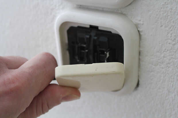 Ahora han revelado la placa de montaje del interruptor de luz. 2 tornillos se utilizan para mantener en su lugar.