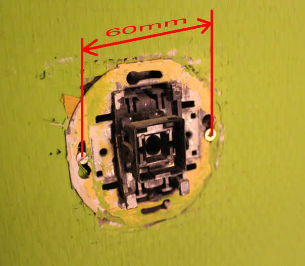 Tome una regla (u otro dispositivo de medición) y mida la distancia entre los dos tornillos. Para este tipo de interruptor es generalmente 60mm.