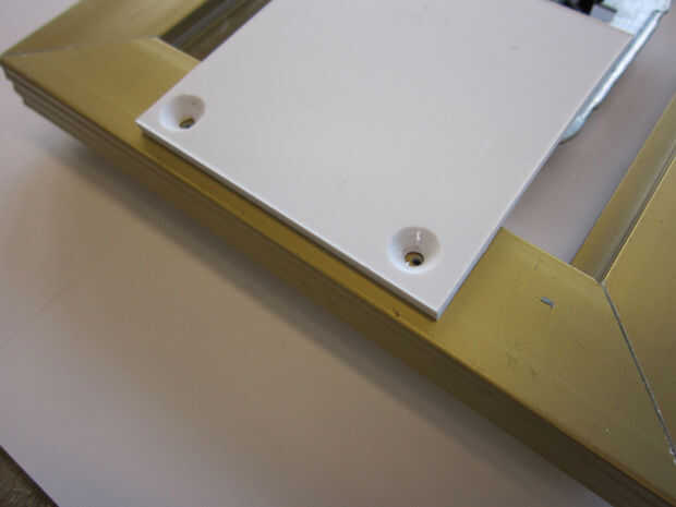 Fije las dos tiras en el bastidor con los tornillos o puede utilizar hotglue.