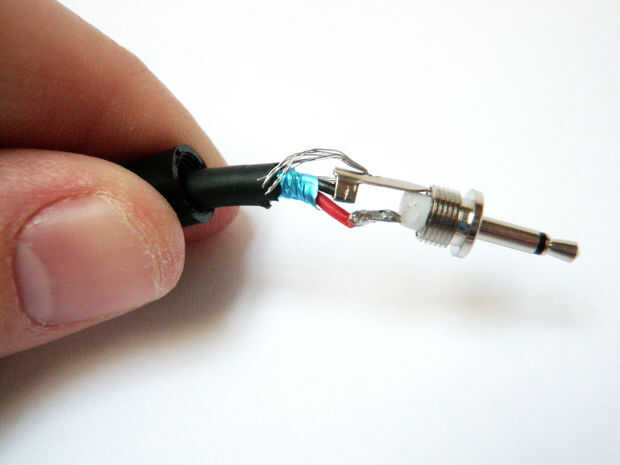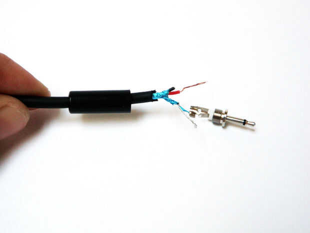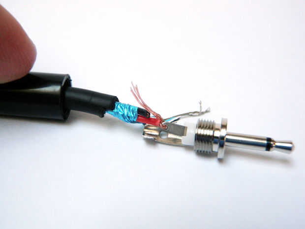 Deslice la tapa del enchufe en el cable antes de que la soldadura.