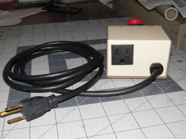 este es un muy fácil de hacer, barato, durable pie-controlado interruptor que puede controlar el poder en cualquier pequeña herramienta o artefacto, como una Dremel u otra herramienta rotatoria, un motor giratorio de altavoces del órgano de "Leslie&q