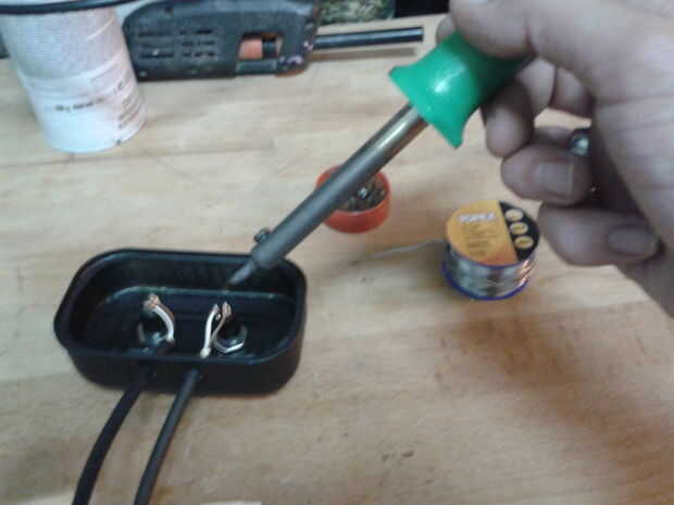 uso de cuchillo para pelar el cable y la soldadura de los interruptores