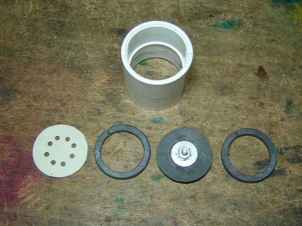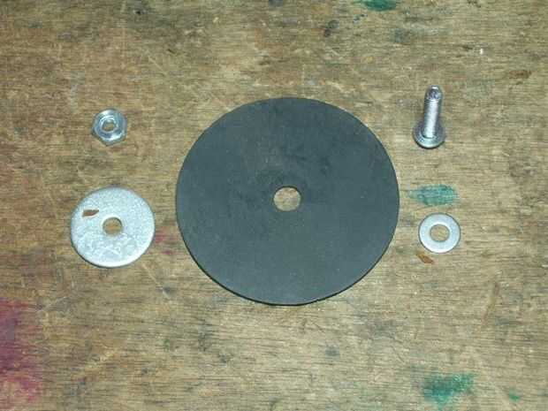 1. la arandela de goma es de 2 de diámetro y 1/16 de espesor. El material es neopreno (creo). Puede encontrarse en la ferretería waaay en la parte de atrás donde guardan los contenedores de hardware. Debe ser cuidadosamente marcado y cortar para caber el ID del 1-1/4" acoplador. El hardware es #6-32. Utilice un tornillo lo suficiente como para dejar varios hilos expuestos.