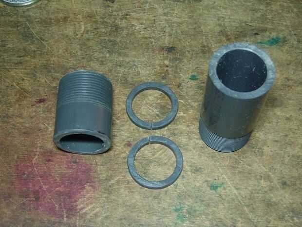 Tenemos que cortar a dos espaciadores de la tubería de sobrante. Los espaciadores son 3/16" de espesor. Deben ser cuadrado y uniforme en espesor.