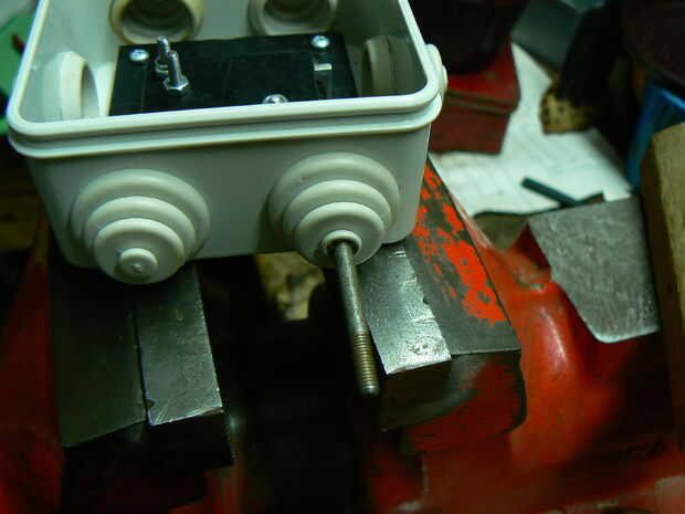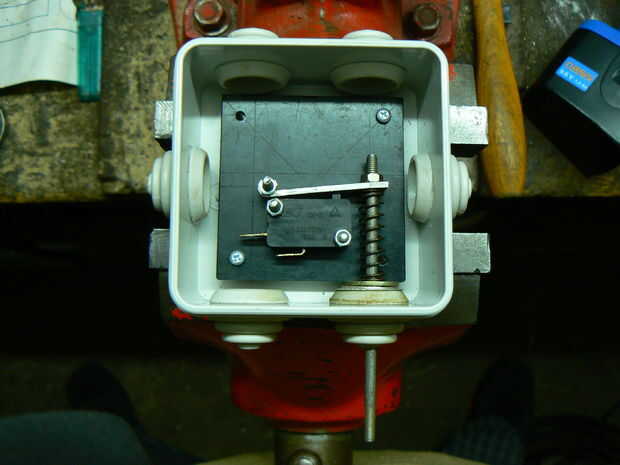 Nota el resorte y las arandelas. Tuve que usar, porque el micro se puede iniciar sin esfuerzo, por lo que el peso de la cadena podría empujarlo y no permitirá que un pequeño agujero en la tapa para soltar el botón.