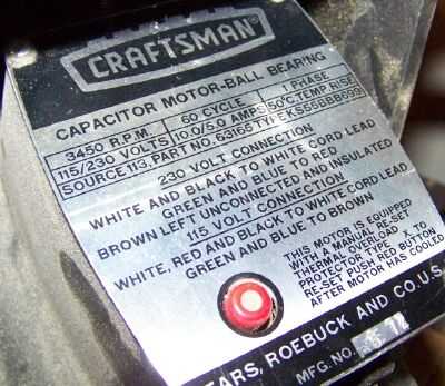 Siempre usando un cheque sustituto de componentes eléctricos para saber el voltaje y la corriente necesita para que coincida con. El motor de mi sierra tiene una placa que cubre la parte superior del motor. Debajo de esta cubierta es una caja donde pueden ser reconectados los cables por lo que el motor funciona a 230 voltios o 115 voltios. Desde que vivo en los Estados Unidos, nuestros establecimientos actuales generalmente fuente de 115 voltios. Utilizo mi sierra con alimentación de 115 voltios.
