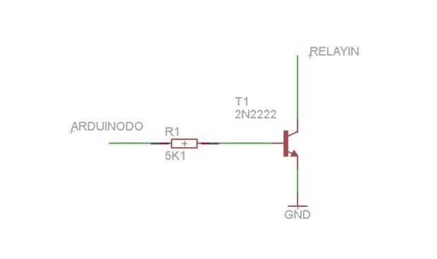 Dado que el módulo de relés utiliza 5V que debemos conectar relé VCC a 5V de alimentación. Entre Arduino pin y relé en agregamos resistencia y 2N2222 tranzistor. En nuestro código de ejemplo utilizamos el pin 13 de Arduino, pero puede utilizar cualquier libre pin digital de Arduino o pasadores más si utiliza relés más. Ver hoja de datos para obtener más información.