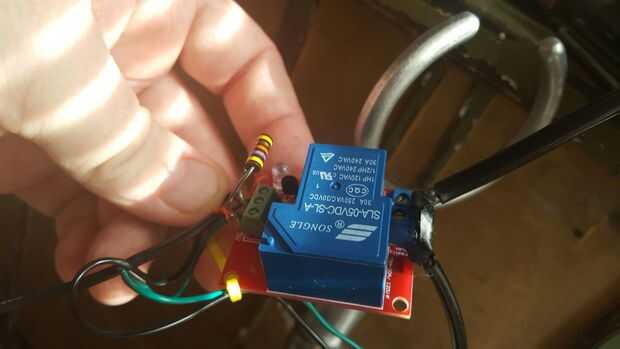 Desconecte la lámpara. comprobaremos su unplugged. clip de un lado y tira un poco hacia atrás (mina estañado con soldadura) ponerlo en la parte superior del relé. Si usted tiene una marcada NO (normal abierto) es donde usted quiere uno, el otro va en común.