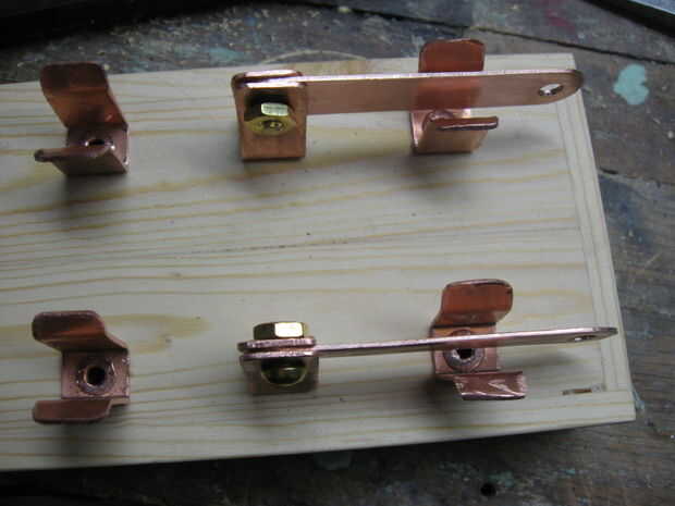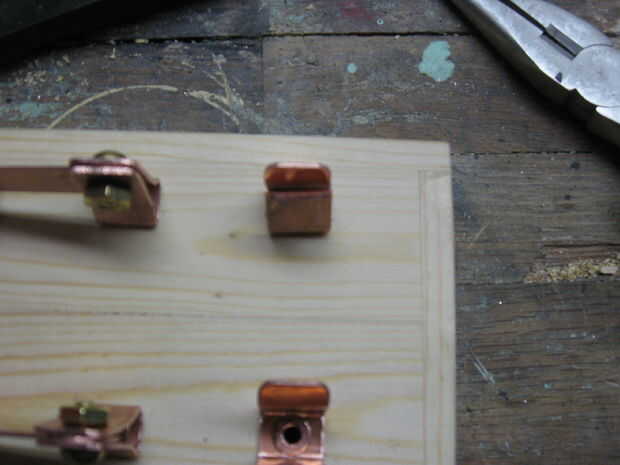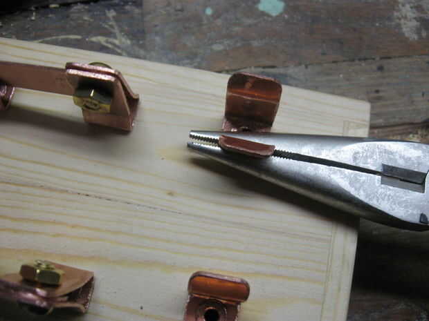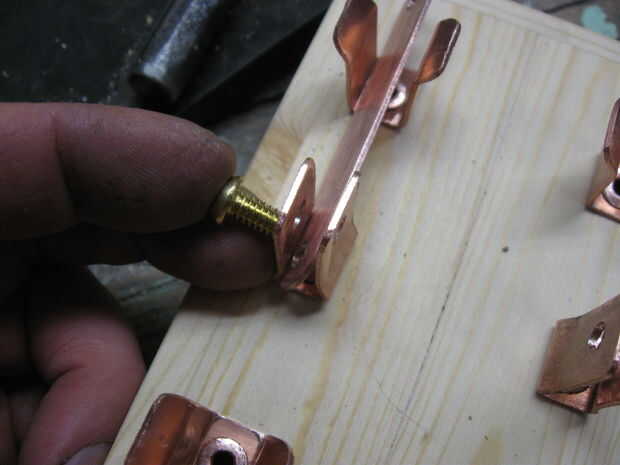 Los contactos de cuchillo están doblados hacia adentro utilizando alicates de punta. Los extremos de contacto deben ser tan juntos como sea posible. en contacto con el cuchillo.