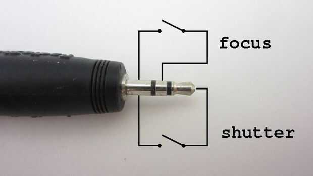 Por ejemplo, una Canon EOS Rebel T3i utiliza un enchufe estéreo de 2,5 mm (3/32" también puede trabajar). Como se muestra en la imagen, el manga está conectada a tierra. El anillo central activa la función de enfoque. La punta activa el obturador. Para activar la atención y el servicio de transporte, sólo tiene conectar a tierra (la manga). Puede hacer esto con un botón mecánico o un circuito eléctrico.