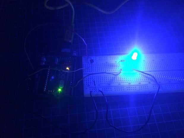 Hay solo lo que queda que hacer. Prueba nuestro proyecto. Subir el sketch, conecte a la corriente, espere unos segundos y luego cierre las luces. Ahora debería ver el LED que brilla intensamente, encender las luces otra vez y el LED debe apagarse. Sugiero que usted tiene sólo una fuente de luz cerca del circuito, como una lámpara, para que funcione mejor.