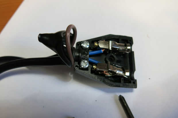 He añadido un lazo de calbe (unex) con el fin de mantener el llop firmemente al cable y mantener fuertemente ambos cables azules juntos fuera del enchufe.