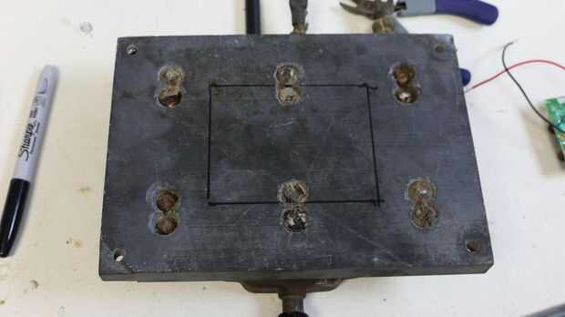 Quería que todos los componentes y montar dentro de una caja eléctrica de banda doble regular. No quería modificar o reparar la pared. Primero dibujé el contorno de la caja.