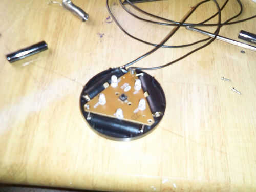 Tornillo o vuelva el PCB en su lugar, y Encamine los alambres hacia fuera a través del agujero en la carcasa.