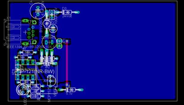 D3 (Firewire) 24 voltios Zener/1 W (mouser #512-1N4749A, $0,09)