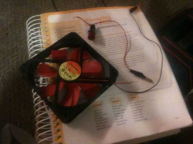 Tomé la fuente fan y el poder fuera a probar en un enchufe con un interruptor de circuito de seguridad, y luego pegado todos los cables expuestos excepto el final que va ser reconexión al ventilador una vez instalado el interruptor. El cable no tiene necesariamente que ser picado tanto, lo hice porque hubiera sido hacia difícil tratando de adjuntar y envolver una vez instalado. Trabajar más inteligente no más duro, menos cosas Haz arrojados por la ventana de esa manera.