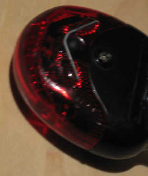 Aquí están las imágenes de algunos guardias construido, uno para una Cateye básico blanco LED linterna frontal, para una Zefal rojo blinky luz trasera de LED y uno para un Cateye TL-LD-1000 blinky LED trasero rojo.