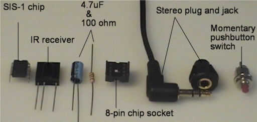 Decidí usar un estéreo y un viejo cable/conector de auriculares para el receptor de IR para que pudiera moverse. Realmente no necesito ahora porque el interruptor de CA será detrás de una mesa que es capaz de recoger la señal de IR cuando rebote en el techo. Pero si alguna vez decido volver a arreglar las cosas el cable/clavija de jack/me da más opciones.