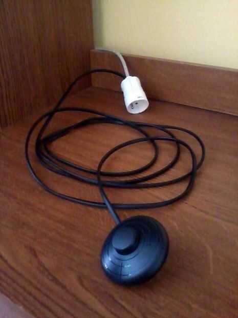 2) idea es bastante simple: hacer un cable de extensión con interruptor remoto de la línea de fase. En nuestro país hay tres líneas de cable de extensión, pero después de pluging en el zócalo, sólo uno de ellos es "vivo". Que se necesita cortar y alargar al interruptor. Yo estaba considerando construir-en el interruptor el cable, pero significaría mucho cables a través de mi habitación. También quería cambiar el cableado de la lámpara.