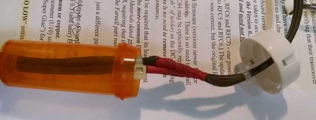 Perforar la botella de píldora (o lo que usas) y pasar los cables. Plan de esto así que no tienes una mezcla difícil de conseguir en su contenedor y difícil de aislar bien--es importante. Proteger las conexiones!